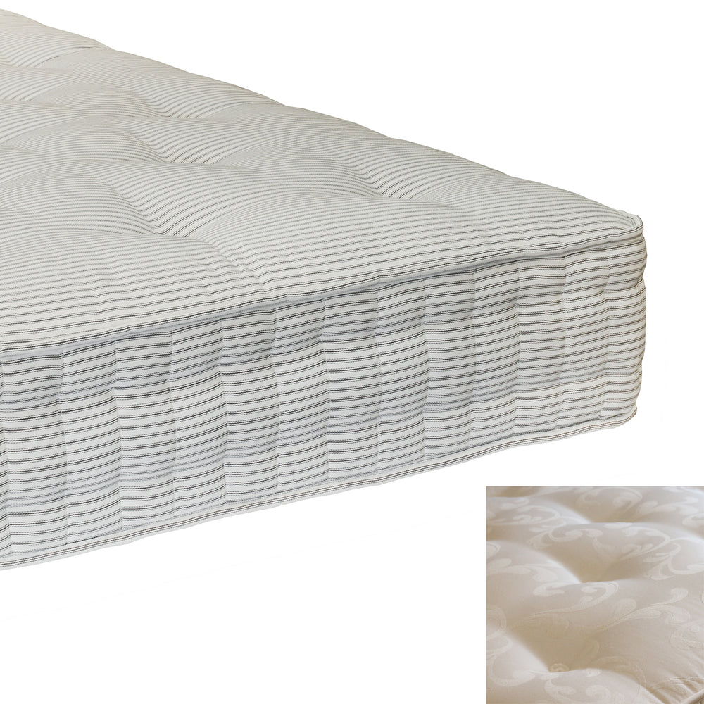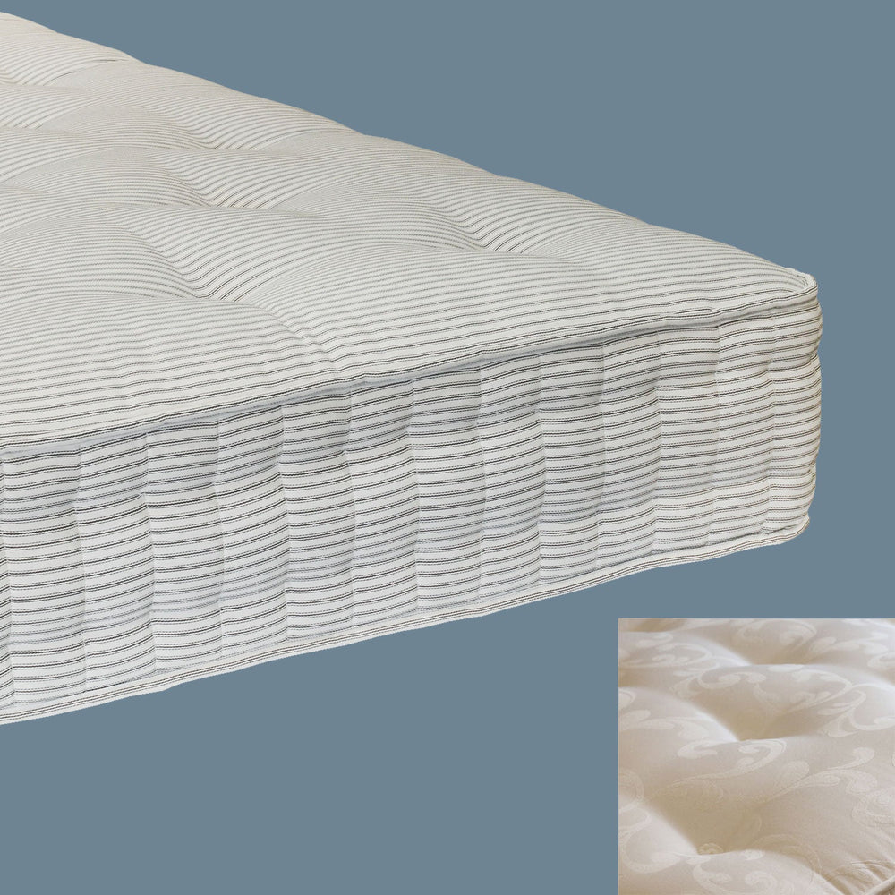 You have the option here to select either a Firm or a Sprung base in Black & White Ticking or Cream Damask. For a range of base choices please see our King Bed Base page.