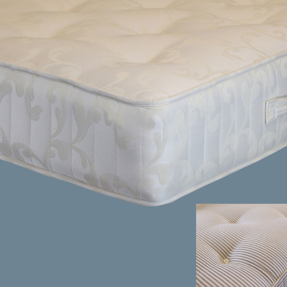 You will need a bed base to support the mattress. Bed bases sit on the bedstead frame and can be either Firm or Sprung and come in different depths with a choice of covers.