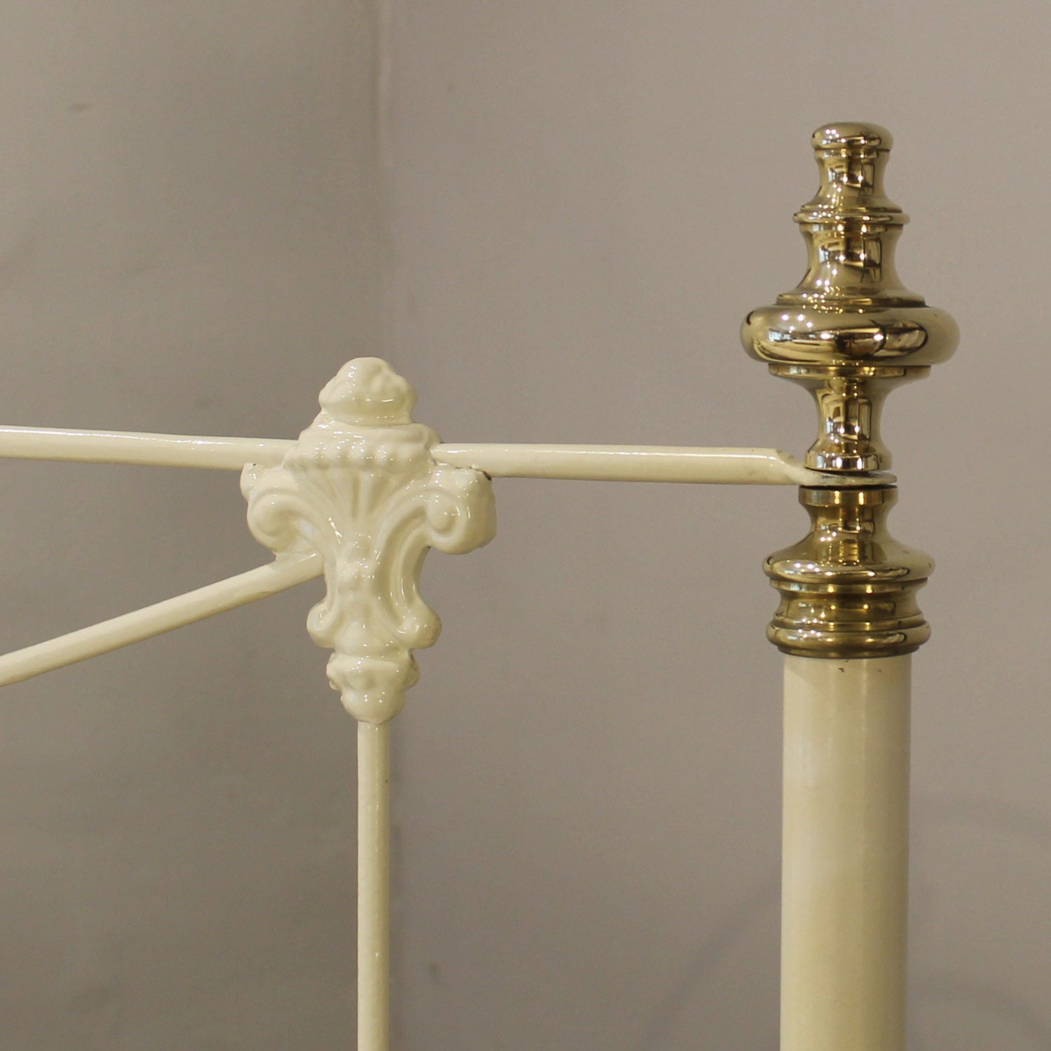 An attractive cast iron antique bed with ornate castings and brass fittings finished in ivory, circa 1880.