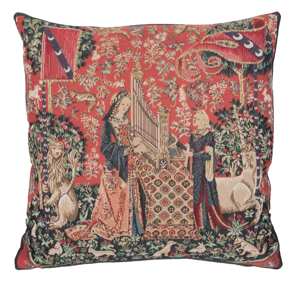 This beautiful tapestry cushion is finely woven by skilled weavers on traditional Jacquard Tapestry looms. The tapestry design is then sewn into an exquisite cushion cover in England and is meticulously hand-finished with a luxurious British velvet back. You can select from a filled cushion (with removable feather filler) or as a cushion cover only.