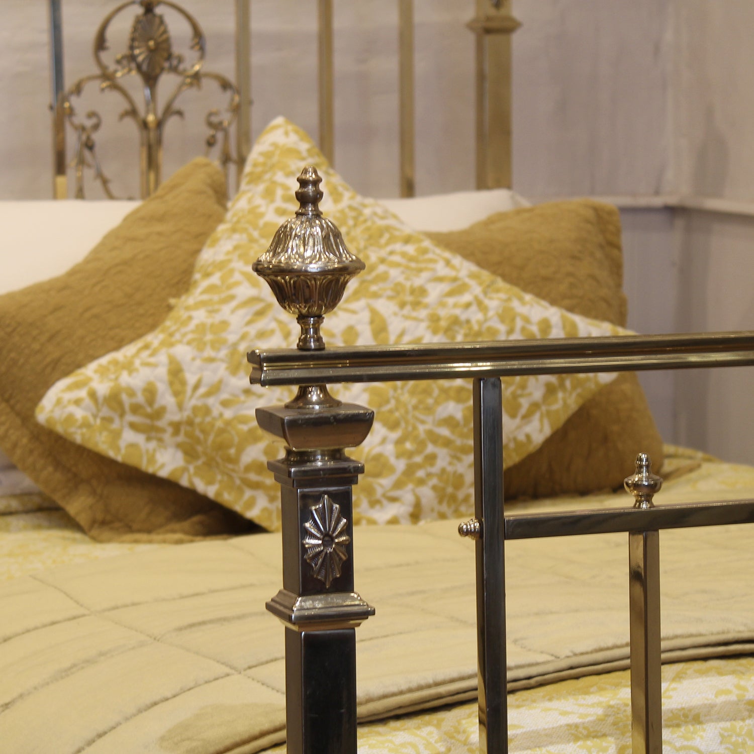 A stunning Edwardian all brass bedstead with square section posts and rails, decorative finials and central decorative brass castings in the head and foot panels.
